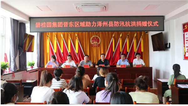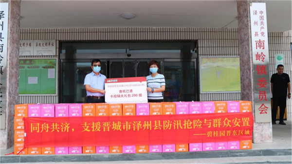 近期晋城市泽州县经历了多年来最强降雨天气,持续时间长、降水总量大、受灾范围广,人民群众的生命财产安全受到严重影响。面对严峻的汛情险情灾情,泽州县政府高度重视并开展一系列灾后救助工作。为发扬碧桂园企业社会责任感,晋东区域特别组织物资捐赠活动用于支持泽州县政府防汛救灾与群众生活安置工作。