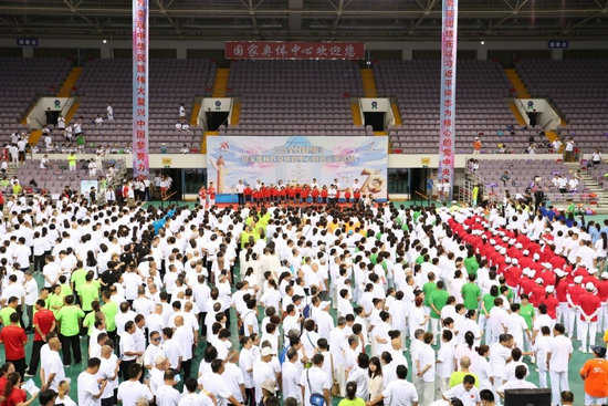 开幕式结束后,各界群众健身队伍登台献艺,展示健身成果,包括广播体操、广场舞、射箭、太极拳以及许多民俗运动,约两小时的健身表演精彩纷呈。