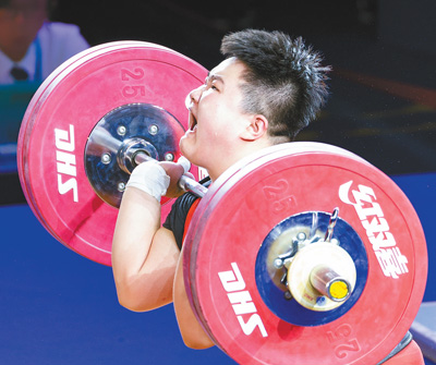 8月9日,第二届全国青年运动会的各项比赛全面展开。图为当日参赛选手在挺举比赛中。 |