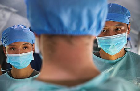 在德国费尔德基兴卫勤训练基地,中德两军医务人员在模拟手术中交流(7月10日摄)。记者 琚振华 摄