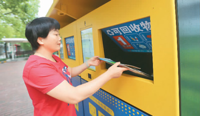 7月1日,《上海市生活垃圾管理条例》正式实施。在上海宝山,市民正在使用“爱回收”智能分类回收机。 |