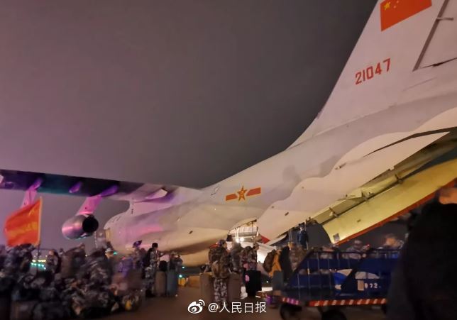24日22时20分,空军1架伊尔-76飞机从西安咸阳机场紧急起飞,运载空军军医大学医护人员飞赴武汉,支援湖北地区防控新型冠状病毒感染的肺炎疫情。海军军医大学医疗队、陆军军医大学医疗队于除夕夜当晚分别从上海、重庆赴武汉参与防疫救援。