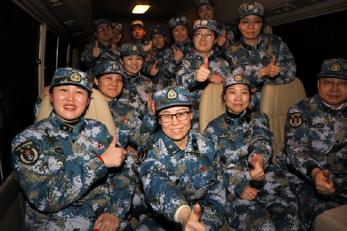 海军医疗队员准备飞往武汉。图片来源:人民海军微博
