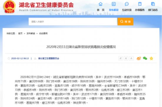 2月11日0时-24时,湖北省新增新冠肺炎病例1638例。