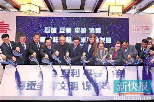 “上合组织国家电影节”发布会18日在北影节会场多功能厅举行,该电影节是上合组织青岛峰会的重要组成部分,按照外交部、国家电影局部署,本次电影盛会以国家级电影节规格、国际电影节流程组织实施,以尊重多样文明、谋求共同发展为主题。电影节将于6月13日至17日在中国青岛举行,将邀请上合组织8个成员国和4个观察员国的电影代表团、电影艺术家、电影企业代表参加,将有近60部上合国家的优秀影片参加展映和评奖。