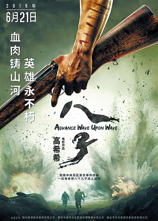 根据赣南真实事件改编,由高希希执导,邵兵、刘端端领衔主演的战争史诗电影《八子》,近日在江西赣州举行发布会。该片讲述一位母亲把八个儿子送上了战场,为家国付出的感人故事:在1934年的赣南中央苏区,杨家八个儿子悉数参军,有六人先后阵亡,最后大哥杨大牛(邵兵饰)带领幼弟满崽(刘端端饰)和全排战士,与敌人血战到底直至拼尽一兵一卒。该片将于6月21日登陆内地院线。