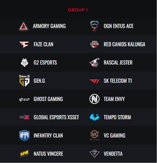 2019绝地求生全球总决赛汇集了来自世界各地的最强PUBG战队,以下32支团队将分成两个小组在本周末的小组赛中一展拳脚: