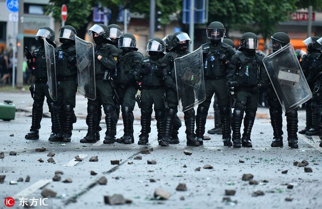 汉堡街头一片狼藉。(图片署名: 东方IC) "