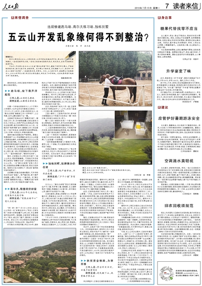 人民网北京7月16日电 郑州市委宣传部官方微博15日晚发布消息称,7月15日,人民日报“读者来信”栏目刊登了《违规修建跑马场、高尔夫练习场、独栋别墅 五云山开发乱象缘何得不到整治?》的来信调查。郑州市委、市政府对此高度重视,当天成立了由市、区有关部门组成的联合调查组,赴上街区对五云山开发问题开展调查。郑州市相关负责人告诉记者,将按照实事求是、依法依规的原则,对发现的问题不遮掩、查清楚、改到底,有什么问题就处理好什么问题。同时,感谢媒体对郑州工作的监督与帮助。