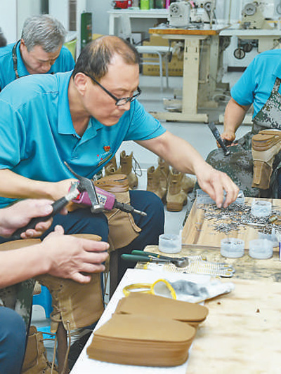 9月17日,保障人员修补训练中磨损的军靴。 |