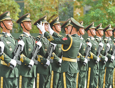 高标准,是各个方队统一的标准。烈日炙烤下,仪仗方队官兵全副武装,往返齐步踏在阅兵训练道上,汗水湿透了礼服,迈出的脚步却扎实稳定。10月1日,仪仗方队队员将身着陆、海、空三军礼服引领受阅大军接受检阅。“方队队员做到了正步‘走百米不差分毫,走百步不差分秒’,每一个眼神、每一个表情都经过专门训练。”仪仗方队队长张洪杰说。